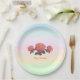 Feliz aniversário, rosa, flores em tons pastéis, prato de papel. O texto pode ser personalizado.