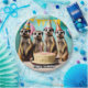 São apresentadas quatro suricatas, três usando chapéus de aniversário e de pé atrás de um bolo de aniversário com as palavras Feliz Aniversário.