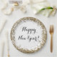 Prato De Papel Feliz ano novo Elegante Dourado e Branco