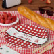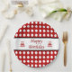 Feliz prato de papel de aniversário com bolinhas. Esta design foi criada por Debbie Quick, dos Designs Criativos Debs: www.debscreativedesigns.com