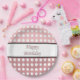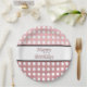 Feliz prato de papel de aniversário com bolinhas. Esta design foi criada por Debbie Quick, dos Designs Criativos Debs: www.debscreativedesigns.com