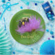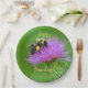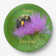 Estas placas de papel de aniversário apresentam uma bela imagem de um néctar de uma abelha que recolhe néctar de um palito roxo.