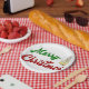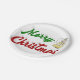 Placas de papel com esta camisa com Feliz Natal em texto verde e vermelho 3D e um anjo. Chapas disponíveis em vários tamanhos.