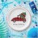 Prato De Papel Feliz Natal Antiquado Feriado Vermelho de Caminhão