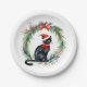 Prato De Papel Feliz Natal Aquarela Negra Gato e Ferro