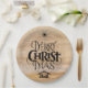 Prato De Papel Feliz Natal Caligrafia Religiosa Madeira Rústica