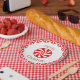 Design vermelho e branco do divertimento do redemoinho com texto customizável.