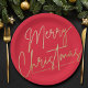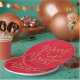Em ricos de folhas falsas em ouro, o Feliz Natal aparece através desses guardanapos de papel vermelho. A combinar guardanapos e mais na nossa loja.
