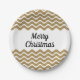 Prato De Papel Feliz Natal Faux Dourado Glitter White Strips