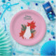 Feliz Natal Chapas de papel de gato Floral com um gato fofo e flores sazonais.