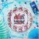 Gnomos de inverno brancos, de cor aquosa, em pratos de papel de Natal vermelho e azul.