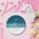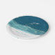 Feliz Natal Ocean Waves Paper Plates apresenta as águas brilhantes e gaivotas brancas da praia Maroubra de Sydney. Tenha um Natal litorâneo e entretena em estilo com estas estonteantes placas de papel. "Feliz Natal" está na na moda moderna carta branca que você pode personalizar para adicionar sua própria saudação, nome ou monograma familiar. Você também pode escolher entre dois tamanhos para atender às suas necessidades.
