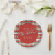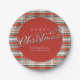 Prato De Papel Feliz Natal - Script de Caligrafia - Xadrez Vermel