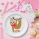 Esta design apresenta uma preguiça festiva pendurada num galho com o texto moderno "Feliz Natal", a popular tipografia vermelha. #natal #feriados #festivo #preguiça #animais #bonitinho #sazonal #festa #mesa #tableware #pratos #moderna #tendência #legal #diversão