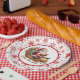 Uma Adorável Placa De Papel De Natal Projetada Em Flocos De Neve Vermelhos E Um Feliz Papai noel Em Sua Lenda