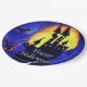 Castelo de Halloween, árvore encantada e morcegos pintados à mão. Feliz prato de festas de Halloween.