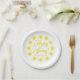 Feliz borda Primavera amarela do sol personalizada texto de script personalizado elegante moderno e alegre pratos de papel fofo. Texto de script personalizável legante.
