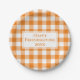Prato De Papel Feliz Xadrez Laranja Branca de Gingham