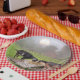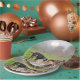 Estas placas de papel apresentam cabras felizes comendo seu janto no pôr do sol.