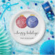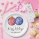 Chapas de papel de Natal simples e elegantes, "Felizes Feriados", em letra de estilo caligrafia e letra de estilo caligrafia. Apresenta Enfeites de natal de aquarela.Perfeito para a sua próxima festa de Feriado. Ilustração Watercolor de Kristine Lee. Para obter mais informações, visite www.kristineleedesigns.com