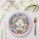 Prato De Papel Felz pascoa com coelhinhos, ovos e flocos