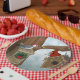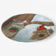 Esta cena bonito do inverno mostra os vizinhos emplumados que compartilham no espírito da estação. O pica-pau está oferecendo uma semente de girassol a seu amigo cardinal, que está decorando sua casa do pássaro. Verifique os conselhos de corte, placemats e guardanapo para fora de coordenação para ver se há seu feriado divertido.