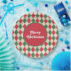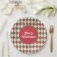 Padrão de diamante de harlequin, de aparência festiva e rústica, em vermelho feriado e verde em fundo angustiado/envelhecido. Texto de Feliz Natal personalizável em círculo central
