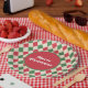 Prato De Papel Feriado de Harlequin Verde Retroativo