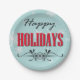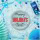 Design Feliz Natal estilo Vintage com flocos de neve e decoração floral em fundo azul