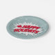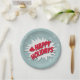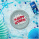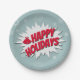 ilustração do estilo gibi Feliz Feriados com a campainha de Natal e a decoração dos flocos de neve em fundo azul