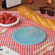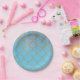 Prato De Papel Festa da Sereia Brilho Iridescente Azul e Dourado