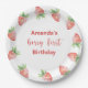 Prato De Papel Festa de 1º aniversário com morangos em aquarela