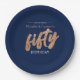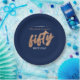 Prato De Papel Festa de 50 Anos Moderno Dourado & Azul | Cinquent