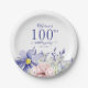Prato De Papel Festa de aniversário 100ª Floral Púrpura Elegante