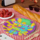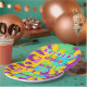 Decorem a vossa festa com estilo com este incrível lodo colorido inspirado no prato de aniversário. Ele tem um design colorido que inclui espalhamentos brilhantes e cores de rosa-quente, roxo, verde-neon, amarelo e azul-neon. A placa de aniversário também apresenta o nome do seu filho e está disponível em vários tamanhos e formas.