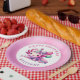 Cartoon de anime bonito, cor-de-rosa e pratos de papel festa de aniversário de menina roxa.