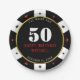 Placa de papel para festa de aniversário de 50 anos com ficha de poker de cassino preta, branca, vermelha e dourada. Personalize com os detalhes do seu evento.