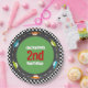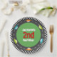 Este design de aniversário da corrida de carros é um design emocionante e excitante para crianças que amam carros e corridas. As bandeiras controladas, carros de corrida, uma pista de corrida junto com tipografia ousada e cores criam este design visualmente atraente e atraente. Este design pode ser uma experiência memorável e divertida para os convidados da sua festa.