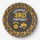 Design de tema de construção amarela para festa de aniversário de menino que inclui obras de construção de grandes máquinas, cones de estrada, sinalização de aviso e outro equipamento todo em cinzas escuras/cinza. Personalize alterando o nome e a idade. Itens de partes correspondentes disponíveis. Festa de excelente!