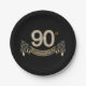 Chapas de papel para festas de aniversário de 90, preto e Dourado, com números bonito de diamante de ouro e banner preto e dourado sobre um fundo de ouro rico. Você pode personalizar essas placas de papel de festa de aniversário 90 com um nome ou outro texto de sua escolha.