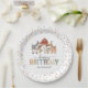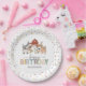 Chapas de papel de festa de aniversário, de cais lindas, com um simples fundo branco, animais de exploração adoráveis, incluindo vacas, cabras, suínos, ovinos, burros, cavalos, coelhos, patos e galos, o ditado "feliz aniversário" e o nome dos filhos.