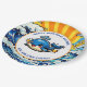 Festa de aniversário de menino com tema náutico ou marítimo em pratos de papel. Azul, baleias amarelas pop art. Adicione o nome da criança na área de personalização.