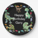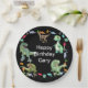Prato De Papel Festa de aniversário do dinossauro a preto
