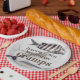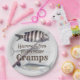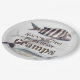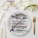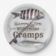 Peixes e pratos das partes de pesca com duas áreas de texto personalizado. Imagens de peixes salgados com vareta e rolo. Texto em negrito para nome e estilo de fontes manuscritas para "feliz aniversário". Inclua a idade, se quiser. As placas de papel vêm em dois tamanhos.