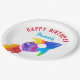 Placa de papel para Festa de aniversário do espaço externo do Rainbow Rocket Ship Outer. Arco-íris foguete navio a aquarela espacial temático material clássico de festas de aniversário modernas simples. www.SamAnnDesigns.com