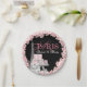 Placas de papel doce de 16 festas de aniversário de Paris com bonito escrita rosa em Paris sobre um fundo floral rosa e preto belo com elegantes tons de rosa e cinzas e calçados de salto alto e Torre Eiffel. Você pode adicionar texto para personalizar estas placas de papel da festa de aniversário de Paris e pode mudar a cor de fundo.