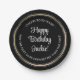 Prato De Papel Festa de aniversário preto Elegante, branco e Dour