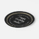 Adicione um toque elegante às decorações de festas de aniversário com placas de papel redondo preto, branco e dourado personalizadas. Toda a redação desta modelo é simples de personalizar. O design apresenta uma borda de folha falsa redonda, caligrafia moderna de script e tipografia de na moda vintage. Pode ser personalizado para qualquer ocasião ou para incluir uma citação favorita ou um ditado engraçado. Observe que o ouro é impresso a cor, não a folha metálica. O design clássico mínimo é adequado para ele ou para ela, e para qualquer ano de aniversário. Parabéns e Feliz Aniversário!
