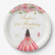 Esta elegante e glamourosa placa de festa de aniversário apresenta uma bela princesa com cabelo escuro e pele escura em um vestido de bola rosa. O texto combina o script manuscrito e as fontes sans serif modernas para um aspecto elegante e sofisticado. Os arranjos florais, borboletas e confete de ouro criam a mistura perfeita de rústicos e quicos. Gráficos por www.etsy.com/uk/shop/SunflowerDayLove