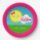 Seu sol está tendo uma festa de aniversário? Torne-o uma ocasião ensolarada com a Placa de Papel de Festa de aniversário Sunshine projetada pela Enchantfancy Design Company. Este tema de festa rosa e amarelo é uma escolha perfeita para festas de aniversário para crianças. O design apresenta um sol sorridente vestindo um arco de cabelo rosa bonito. O fundo azul do céu e a grama verde abaixo adicionam um toque de verão.